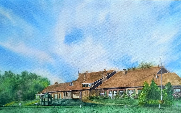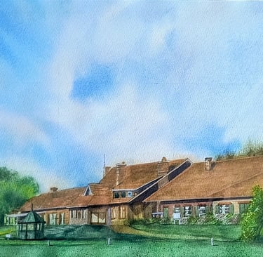 Pinturas que capturan la calma y belleza del golf en acuarela.